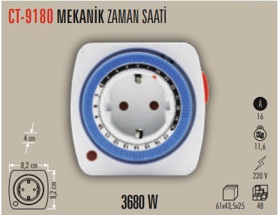 CATA CT-9180 MEKANI?K ZAMAN AYARLI PRI?Z TI?PI? isimli ürünümüz şu an için stoklarımızda mevcut değil. Stoklara giriş tarihi hakkında bilgi almak için İletişim Bilgileri sayfamızdaki form aracılığı ile bizlere ulaşabilir ve bilgi alabilirsiniz.