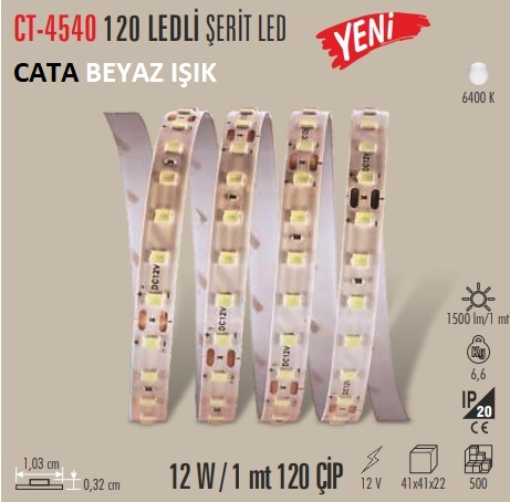 Cata CT-4540 12V 120 LED?li Beyaz ışık 6500K İç Mekan Şerit LED (5 Metre)