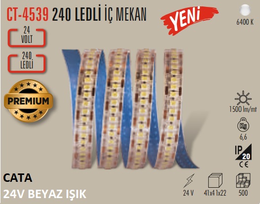 Cata CT-4539 24V Beyaz Işık 240 LED İç Mekan Şerit LED (5 Metre)