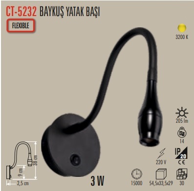CATA CT-5232 Baykuş Yatak Başı LED, esnek gövdesi sayesinde ışığı tam istediğin noktaya yönlendirmeni sağlar. 3200K günışığı rengi göz yormaz, 3W LED yapısı ise düşük enerji tüketimi ile yüksek verim sunar.