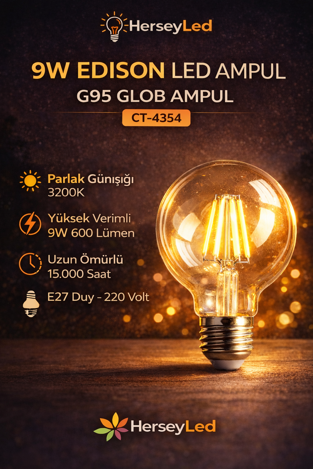 CT-4354 9W EDISON LED AMPUL G95 GLOP AMPUL GÜNIŞIĞI ( BEYAZ CAM )