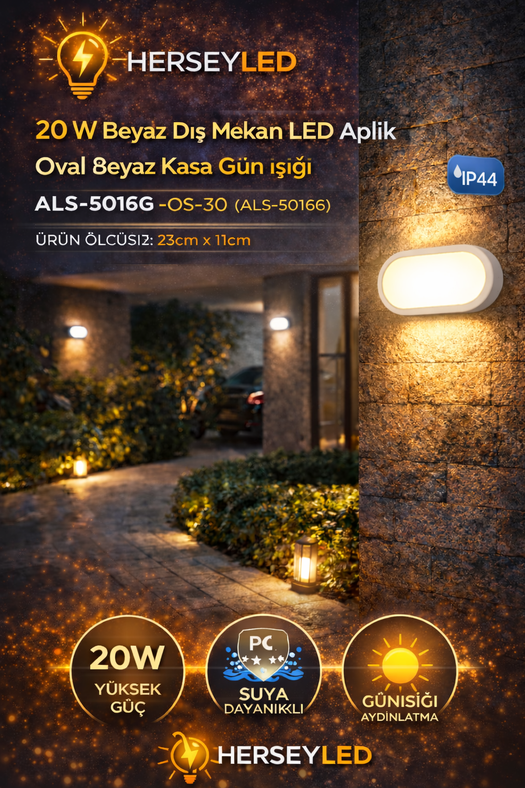 20 W SIYAH DIŞ MEKAN LED APLIK OVAL BEYAZ KASA GÜNIŞIĞI IŞIK ALS-5016G IP44