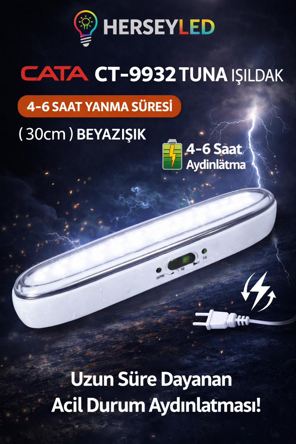 CATA ( CT-9932 ) TUNA LED IŞILDAK (4-6 SAAT YANMA SÜRESİ ) ( 30cm ) BEYAZ IŞIK