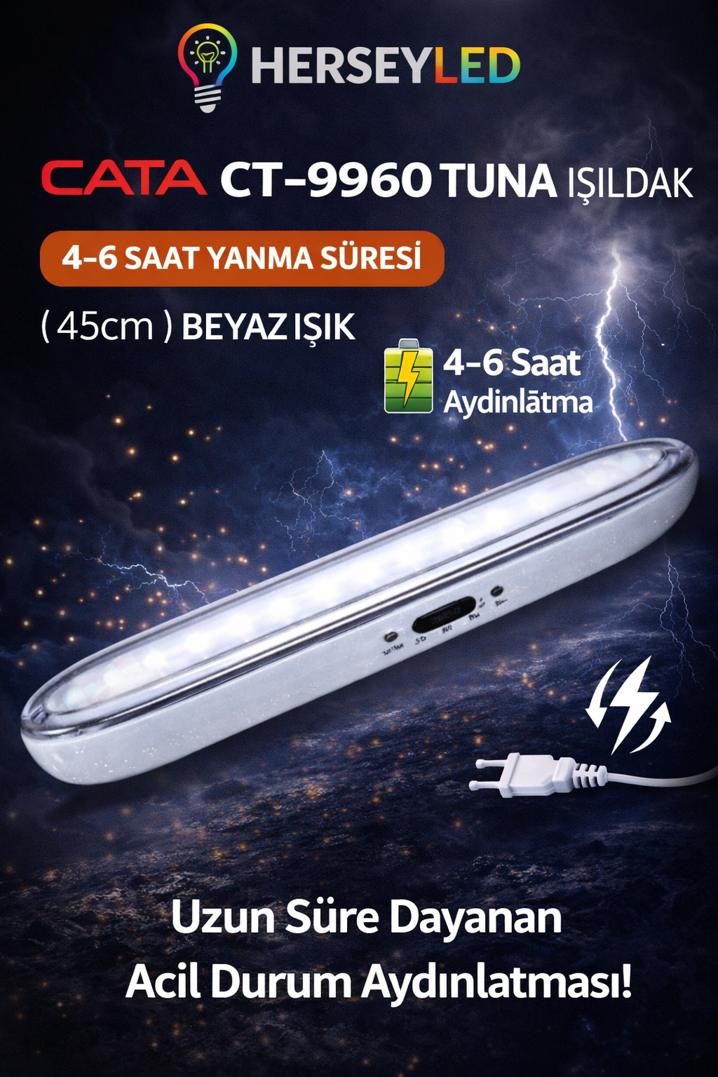 CATA ( CT-9960 ) TUNA LED IŞILDAK (4-6 SAAT YANMA SÜRESİ ) ( 45cm ) BEYAZ IŞIK