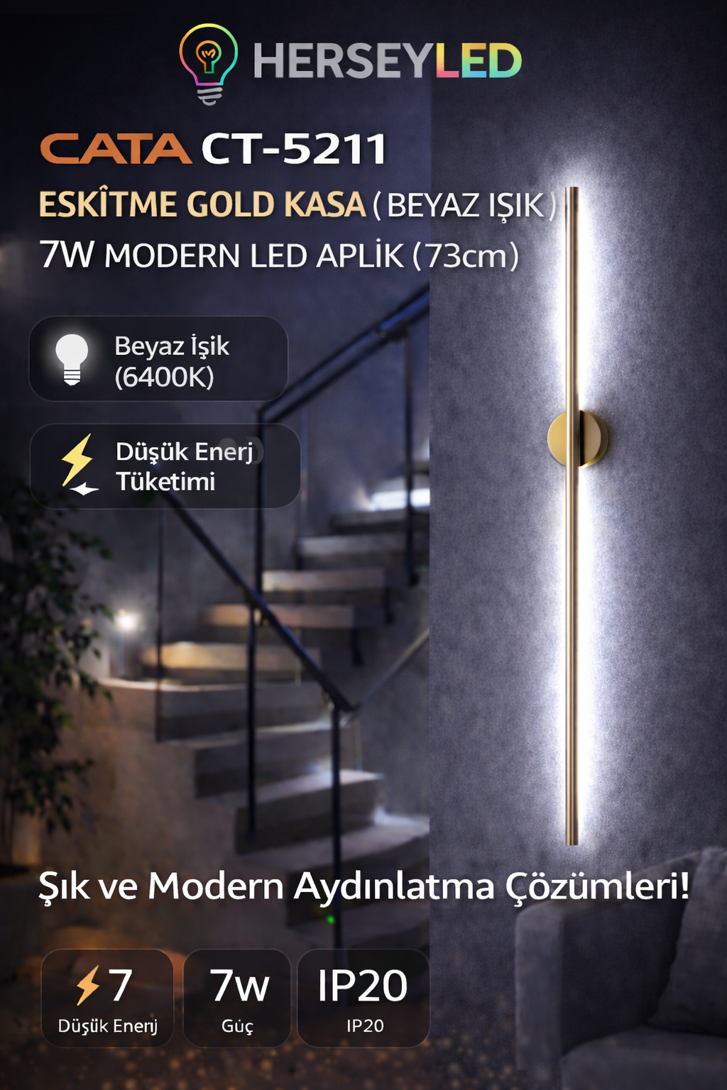 CATA (CT-5211) ESKİTME GOLD KASA ( BEYAZ IŞIK ) 7W MODERN LED APLİK ( 73cm )