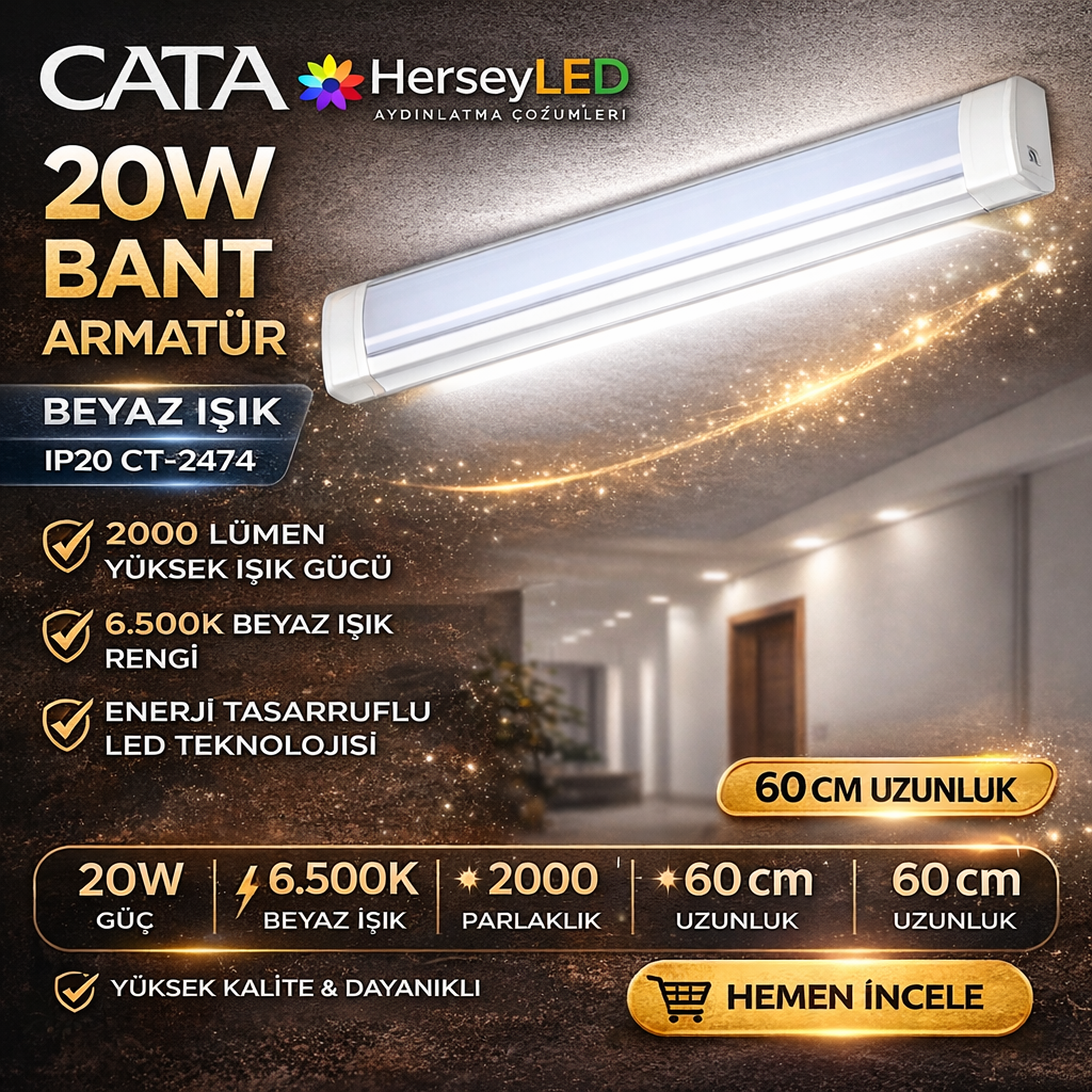 Cata CT-2474 20W 60cm Yatay Led Bant Armatür Beyaz Işık