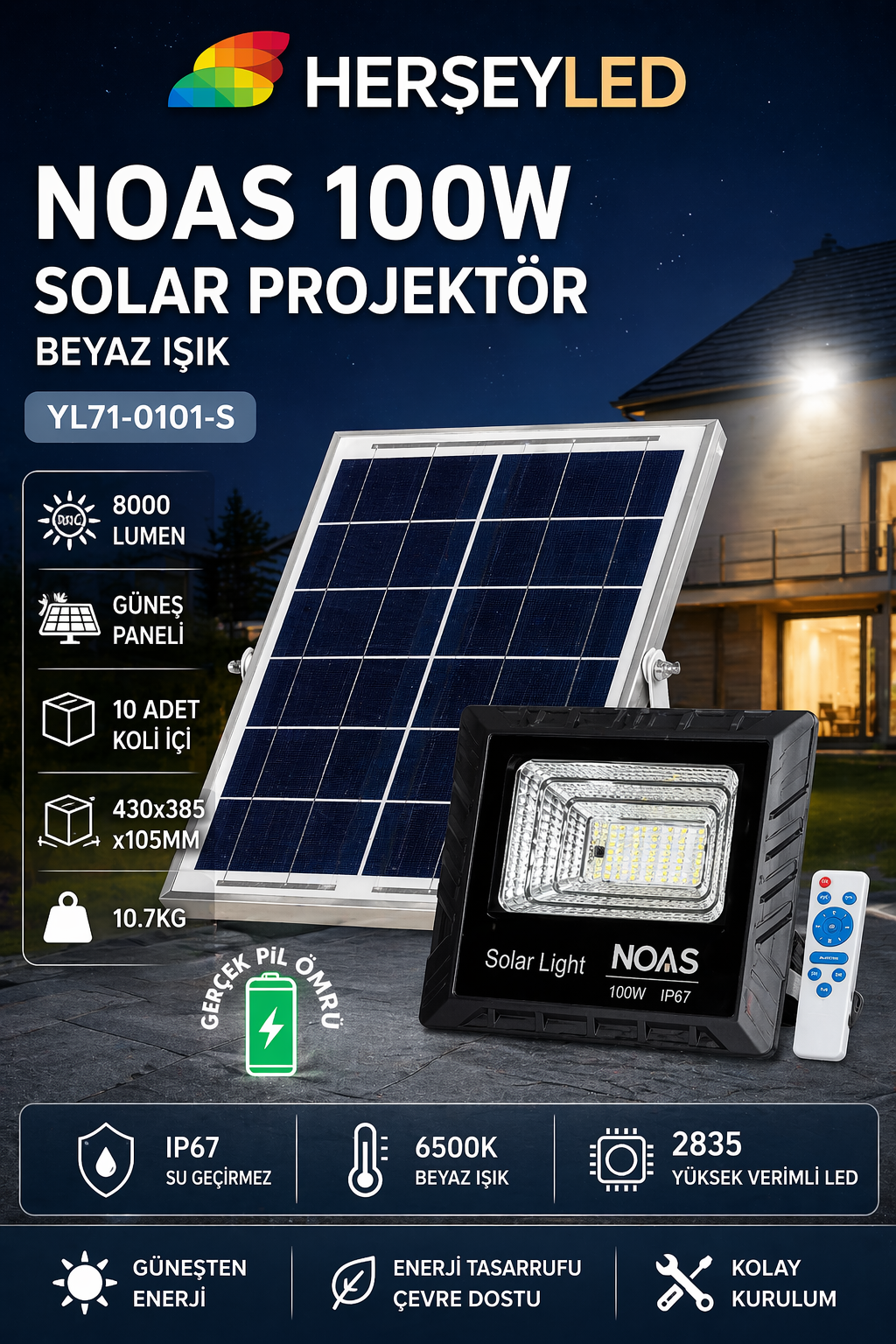NOAS 100W SOLAR PROJEKTÖR BEYAZ IŞIK YL71-0101-S